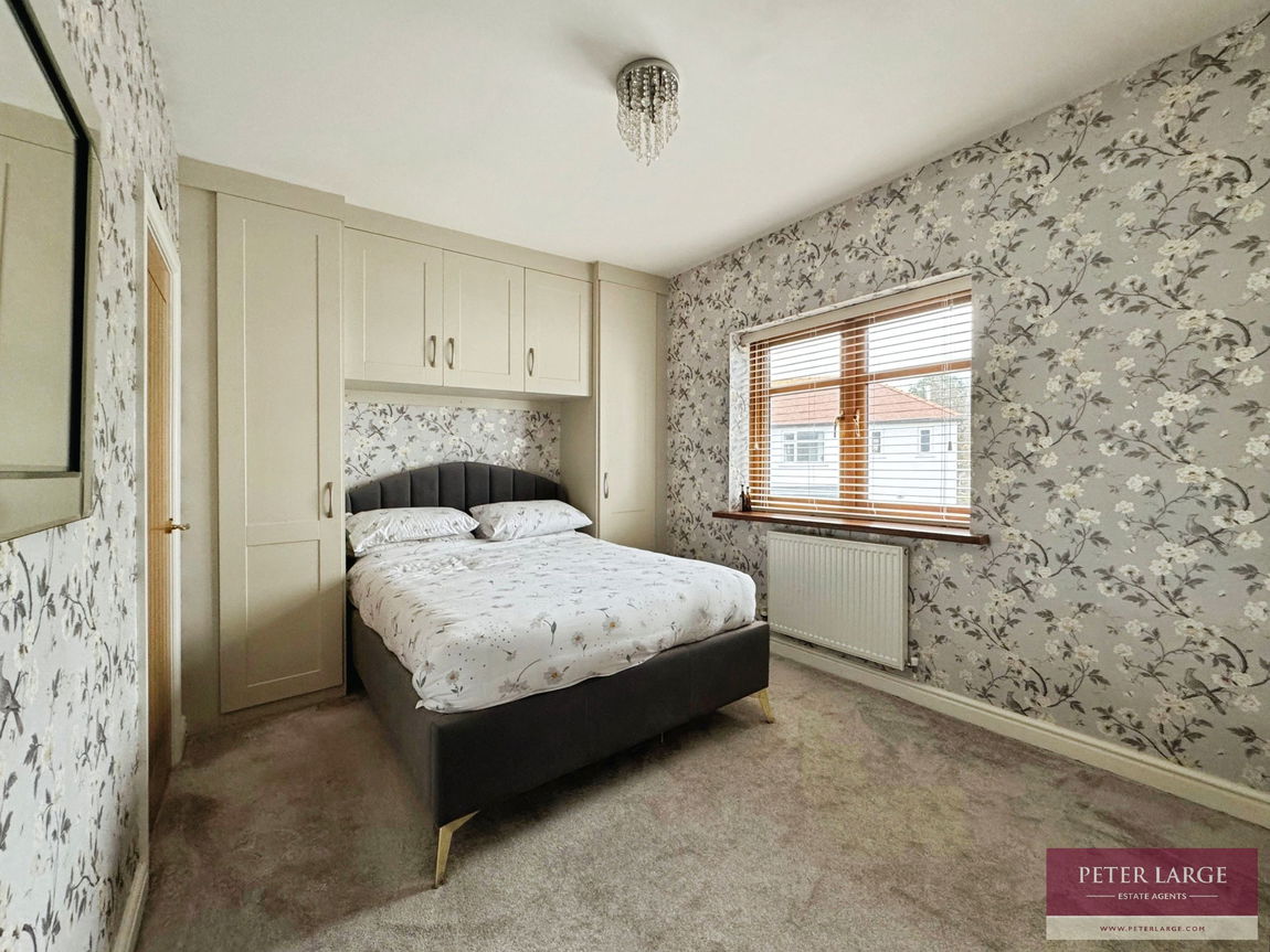BEDROOM THREE: 12' 0" max x 8' 9" (3.68m x 2.69m) With high gloss fitted wardrobes and centre knee whole dressing table, power points, radiator and dual aspect uPVC double glazed windows overlooking the side and front.