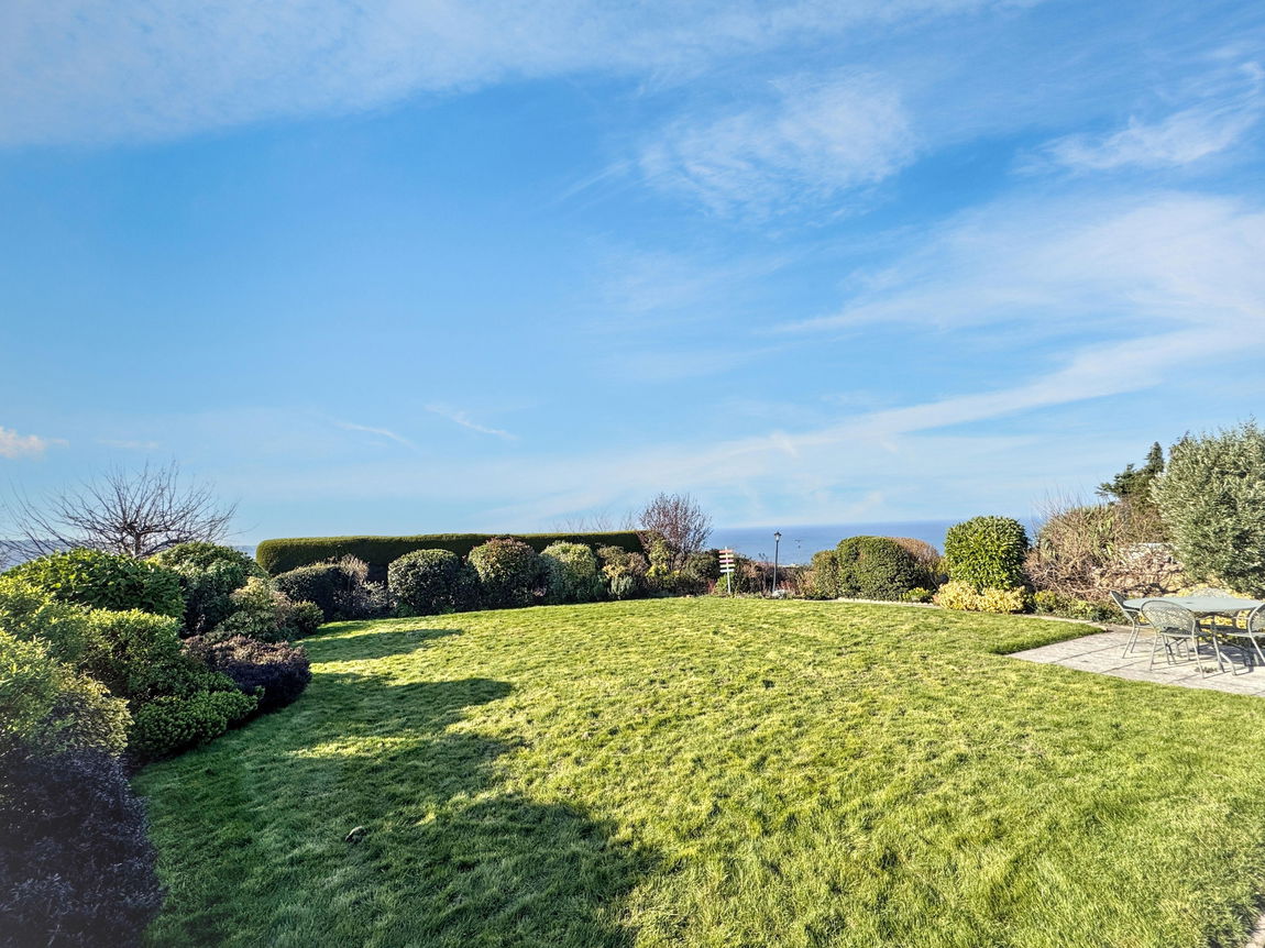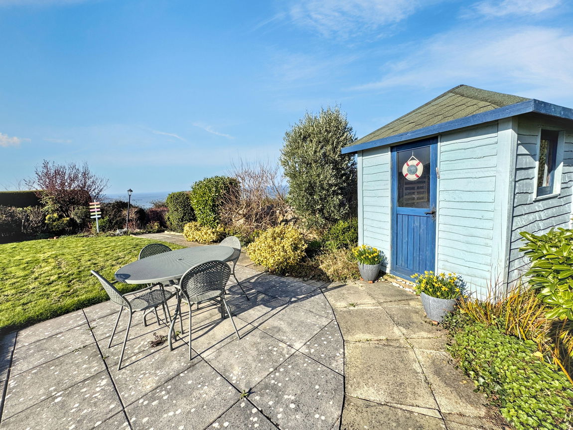 The property sits on a generous plot with stunning coastal views. A sloping shared driveway leads past the large side garden to parking located within the main garden area. The front garden is mainly laid to lawn and features a variety of established shrubs bordered by a stone wall. The oil tank is neatly enclosed within this area. There is sloped access to both the front and side entrance doors. A pathway runs around the property and leads down a set of steps into the main garden. This area is largely flat and again mostly laid to lawn, complemented by an abundance of plants and shrubs. It also includes a summer house, an additional shed and a gate providing access to a footpath behind the property. A patio area offers a perfect space for outdoor seating. The driveway continues up to the garage and provides access to the boiler and utility rooms. There is also a discreet nook for bin storage and 'Calor' gas bottles.