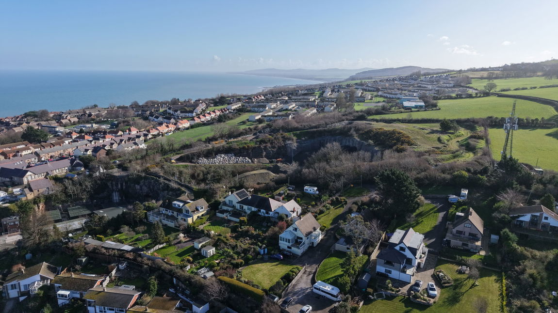The property sits on a generous plot with stunning coastal views. A sloping shared driveway leads past the large side garden to parking located within the main garden area. The front garden is mainly laid to lawn and features a variety of established shrubs bordered by a stone wall. The oil tank is neatly enclosed within this area. There is sloped access to both the front and side entrance doors. A pathway runs around the property and leads down a set of steps into the main garden. This area is largely flat and again mostly laid to lawn, complemented by an abundance of plants and shrubs. It also includes a summer house, an additional shed and a gate providing access to a footpath behind the property. A patio area offers a perfect space for outdoor seating. The driveway continues up to the garage and provides access to the boiler and utility rooms. There is also a discreet nook for bin storage and 'Calor' gas bottles.