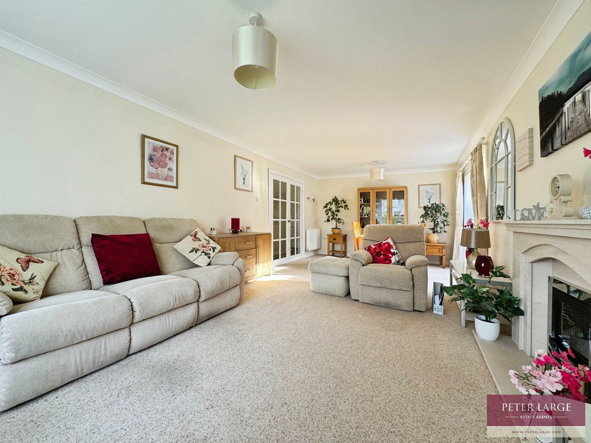 Having a uPVC double glazed window overlooking the rear garden, uPVC double glazed sliding patio doors giving access out onto the rear garden, spot lighting, ceramic tiled floor, a full range of wall and base cupboards and drawers with a complimentary worktop surface over, one and quarter stainless steel sink with mixer tap over, tiled splashbacks, space and plumbing for automatic washing machine, integral dishwasher, integral fridge and freezer with worktop surface over and glass display cupboards with plate rack between, ample power points, radiator, 'Rangemaster Professional+' 5-ring gas cooker with double ovens and 'Rangemaster' extractor fan over and built-in tall standing cupboard housing the 'Ideal' gas combination boiler supplying the domestic hot water and radiators. Access to study.