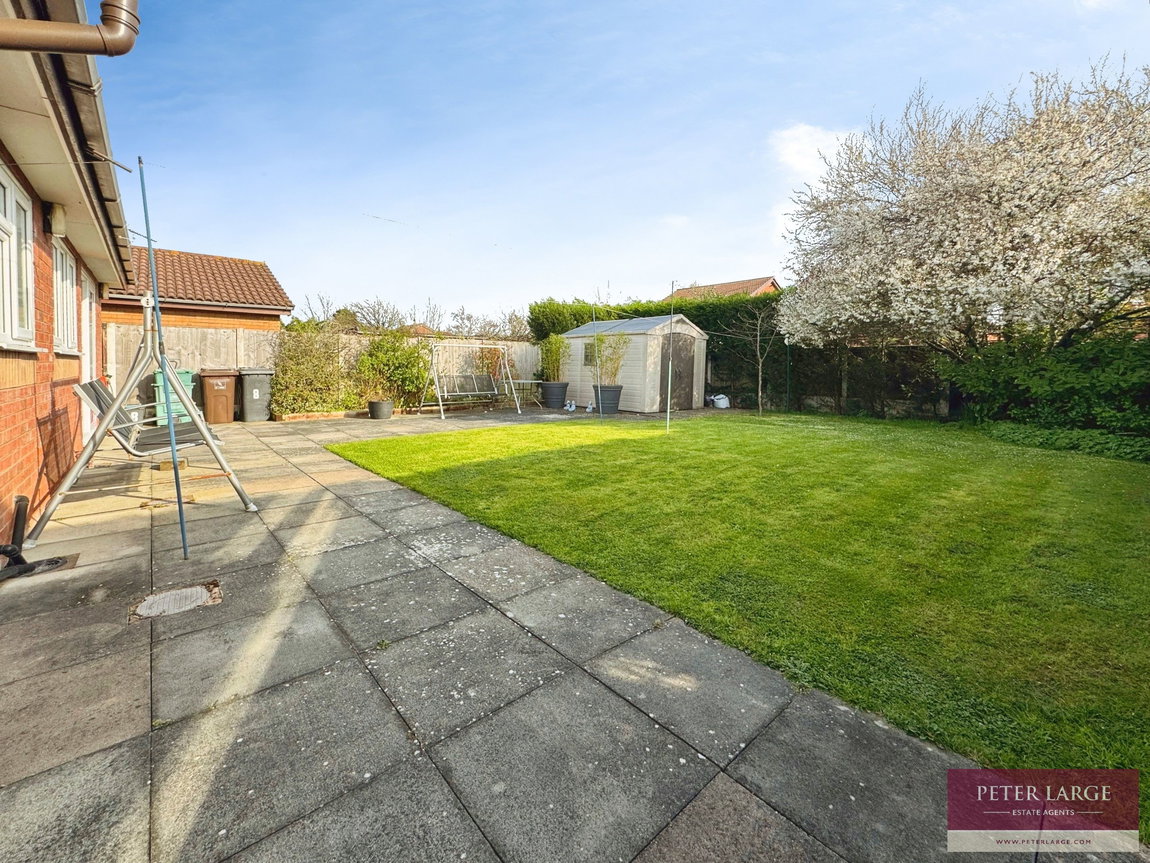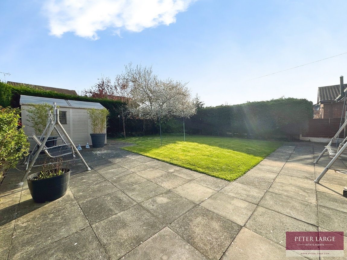 To the front a long concrete driveway with turning point provides ample off road parking for several vehicles, the front garden has a paved area for ease of maintenance which leads up to the front entrance door. There is also a good size lawn area with mature trees and laurel hedging. Paved pathways with timber gates give access both sides to the rear garden. The rear garden has a large "L" shaped patio ideal for outdoor entertaining with a good size lawn and beds containing a variety of plants, shrubs and trees, a uPVC garden store provides ample storage and the garden is bordered by tall timber fencing on all sides. The garden enjoys a sunny and secluded aspect.