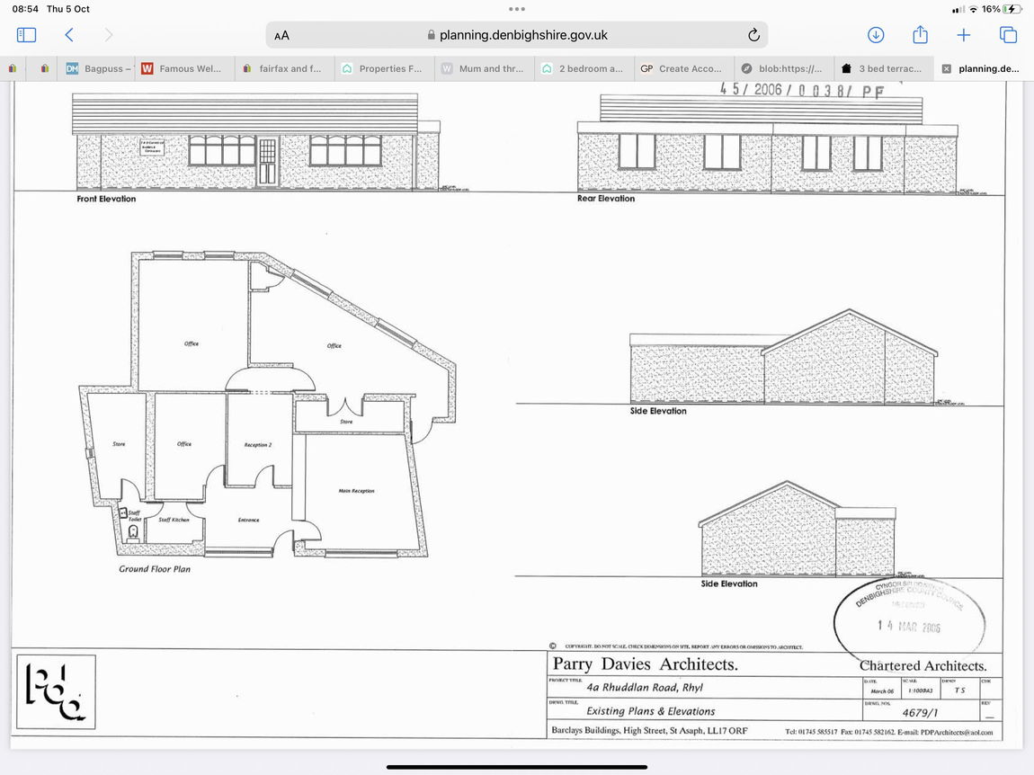 POTENTIAL RESIDENTIAL INVESTMENT (Former planning now lapsed for a detached bungalow or pair of semi's).  This commercial property which is situated on the highly frequented Rhuddlan Road, standing in a level location. The heart of this building is made up of six purposeful office rooms, offering a spacious and functional environment suited for a variety of business needs. Each room is well appointed, contributing to a work space of high standards. There is a dedicated kitchen which provides an area for staff respite and a shower room, adding an additional functional element. As an added benefit, the outside of the property includes a large brick built store within a rear yard.  This commercial property encapsulates a great freehold investment opportunity, extensive internal functionalities. Please don't hesitate to contact us for more information or to arrange a viewing.  Please call our office for more information.