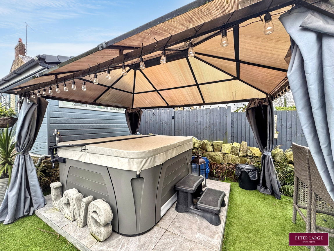 Having an enclosed ornamental front garden with pedestrian access to the front entrance.  The extensive, enclosed rear garden is a particular feature of the property with the additional benefit of vehicle access to a driveway and DETACHED GARAGE.  The rear garden has been landscaped with two Pergolas housing a seating area and hot tub with gravel and artificial lawn for ease of maintenance along with an OUTBUILDING currently used as a Utility/Workshop.  There is a pedestrian right of way over the rear pathway with a bin store area.