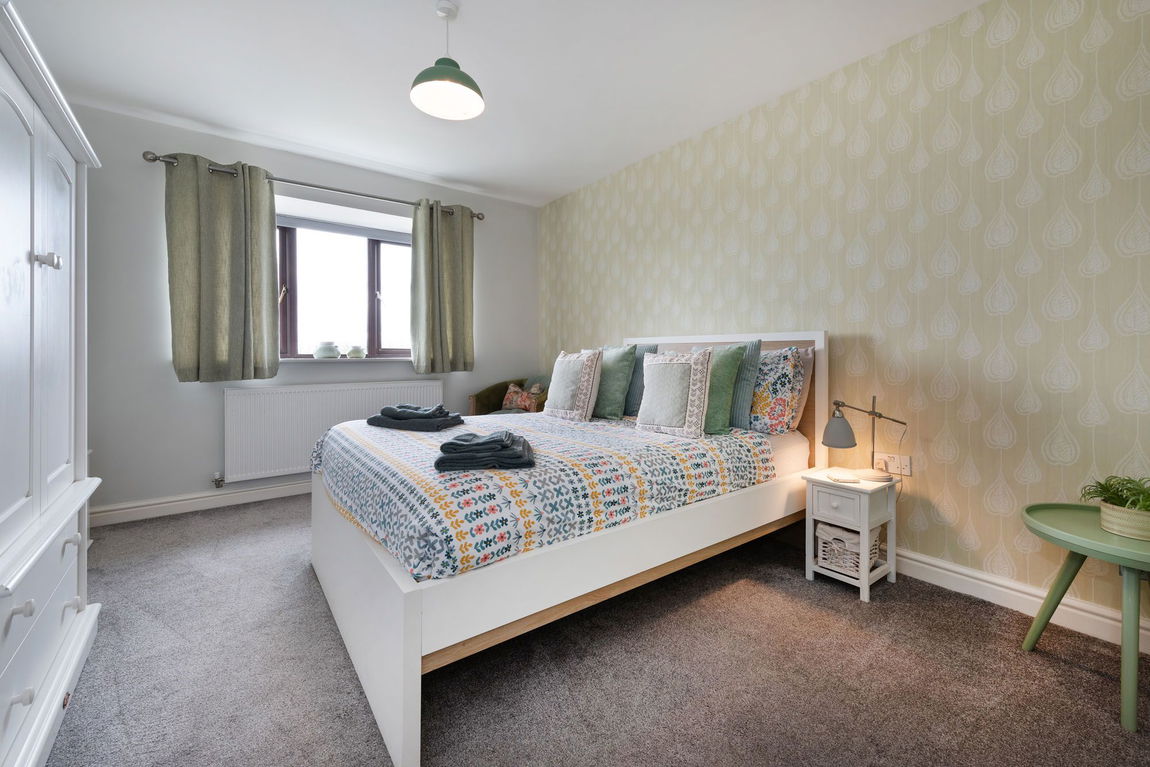 Having 'French doors to a 'Juliet' balcony enjoying superb views over countryside towards the Dee Estuary, a range of fitted wardrobes with open shelving, double panelled radiator, power points, inset spotlighting and a loft access point.