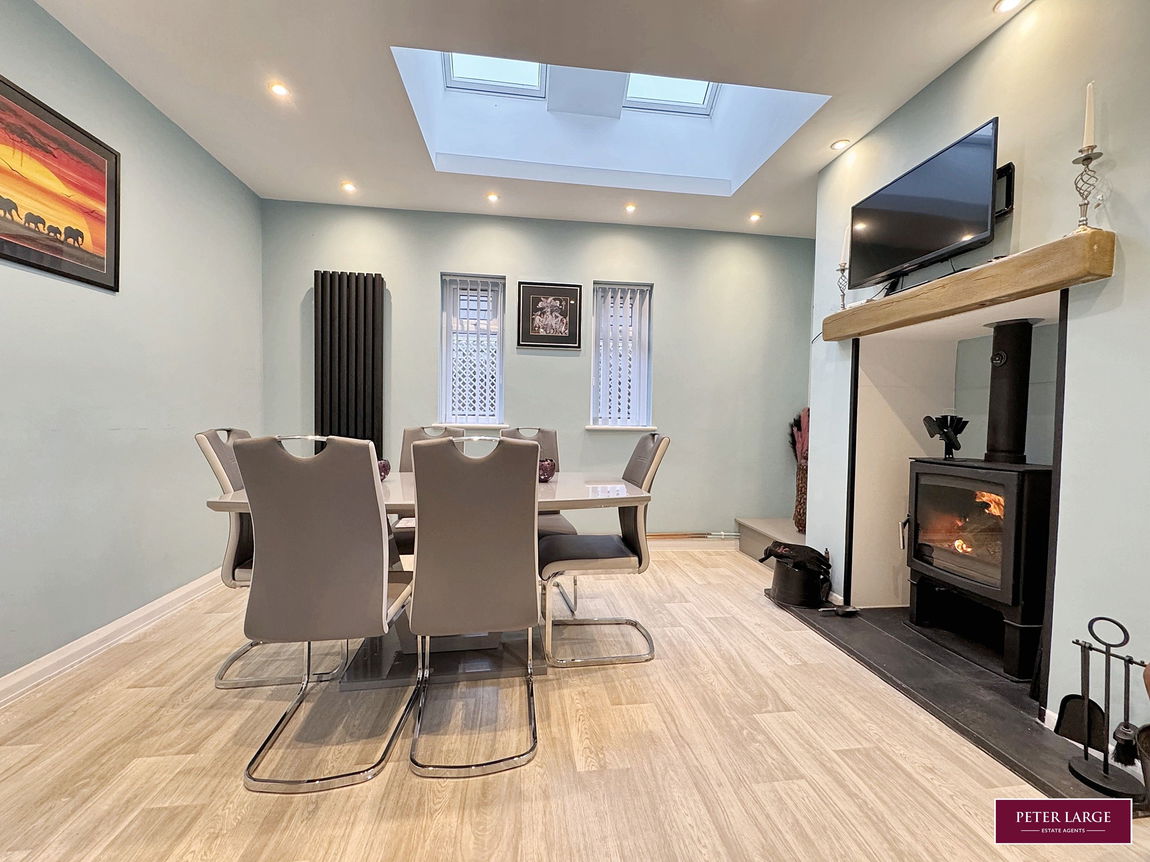 This spacious detached home offers outstanding sea views across the North Wales coast and stunning countryside vistas. This unique property features a large lounge, open plan modern kitchen/dining room with a charming wood burning stove, breakfast area and useful utility room. Having a ground floor double bedroom and luxury ground floor bathroom with two further double bedrooms to the first floor with a modern shower room. Offering a detached Double Garage with extensive parking in a picturesque village setting.
