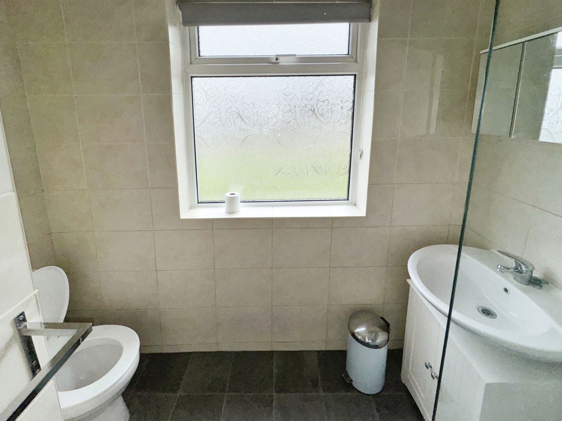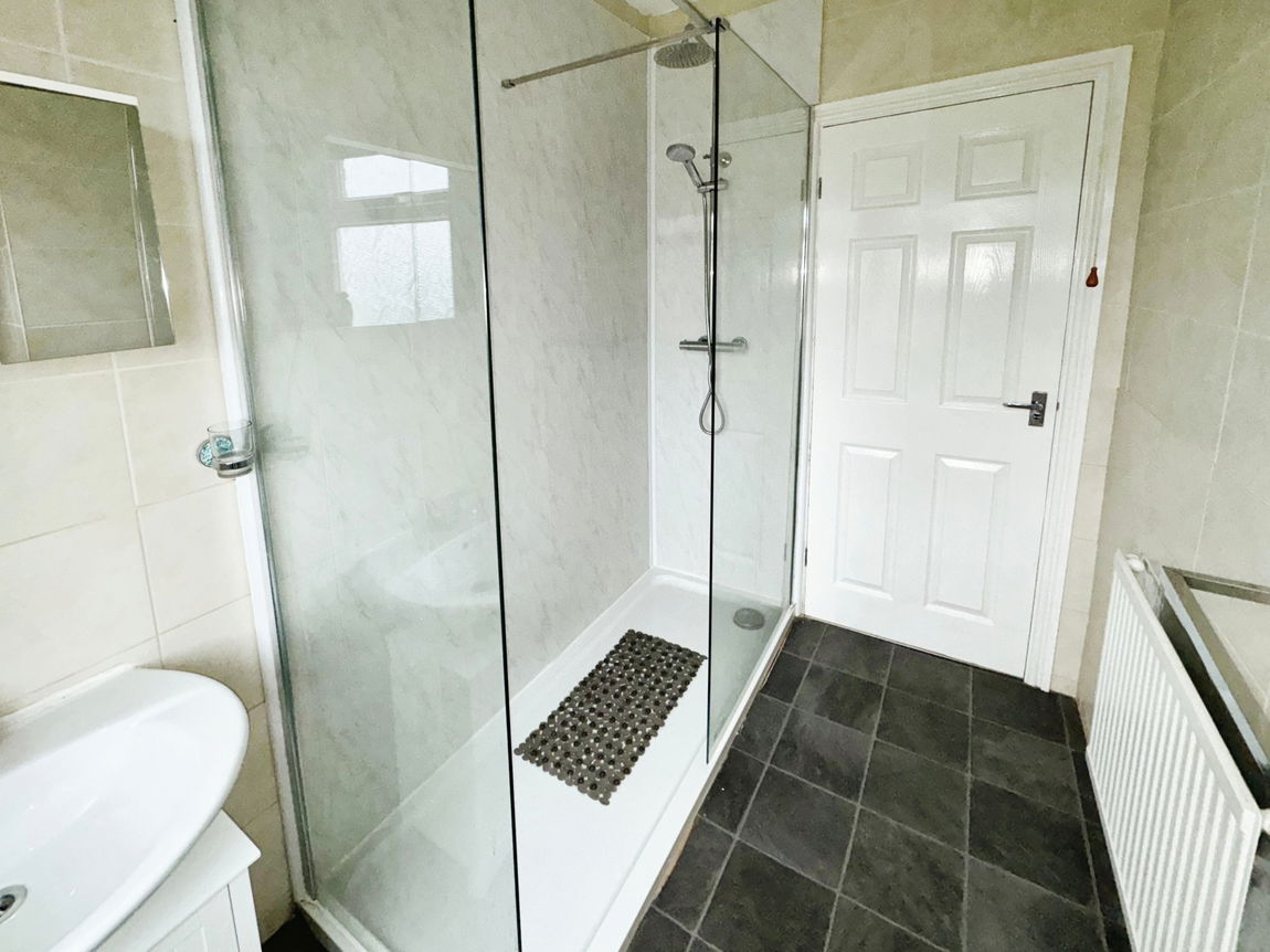 Fitted with a three piece suite comprising low flush wc, wash hand basin and large 'walk in' shower cubicle. Loft hatch, obscure glazed window, radiator and tiled walls.