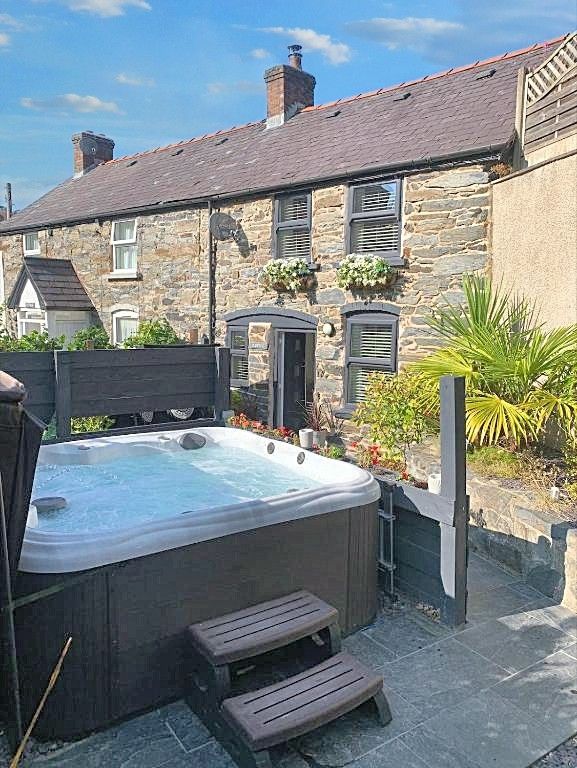 The courtyard is situated at the front of the cottage and is fully enclosed providing privacy and seclusion. The area is laid to large slabs with steps rising to an elevated hot tub and timber shelter. A patio and lighting add to the ambiance.